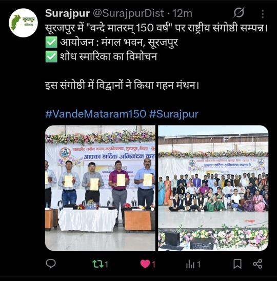 सूरजपुर में वन्दे मातरम् 150 वर्ष पर राष्ट्रीय संगोष्टी सम्पन्न